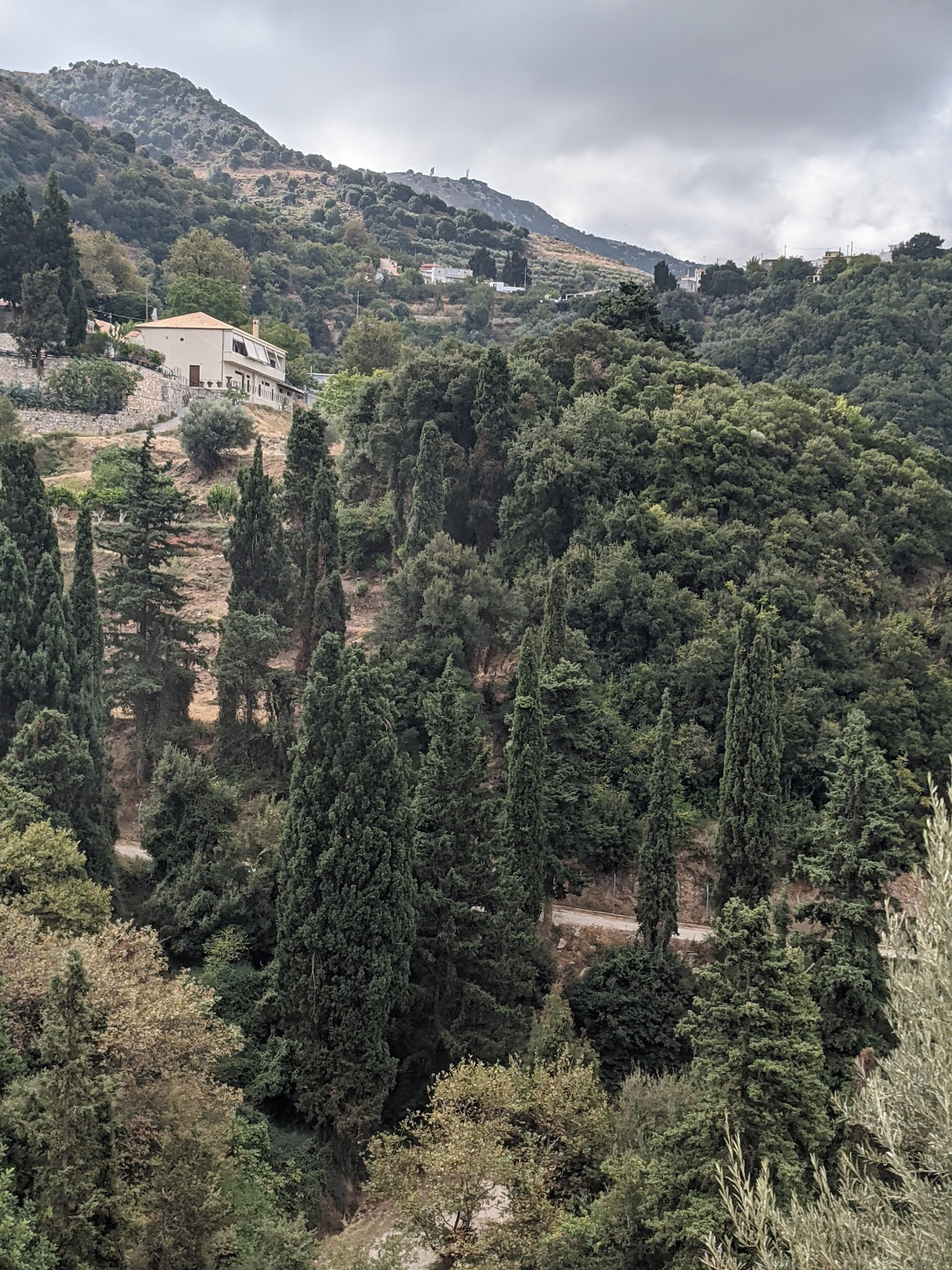 The mountains behind us covered in clouds are some of the highest in Crete.