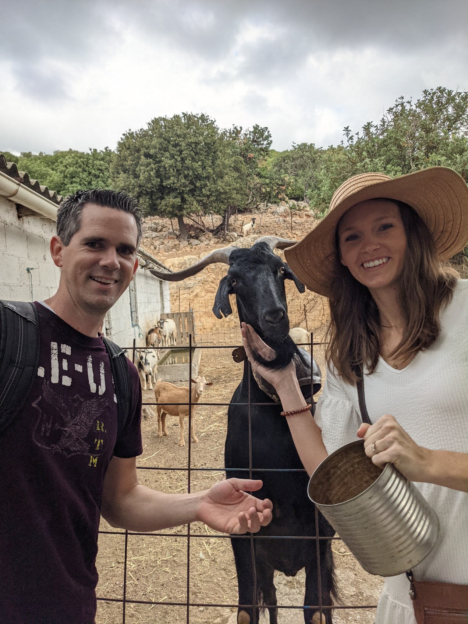 We knew the island of Crete was big and thought a tour would be the best way to see the island. We are so glad we took the tour; it was amazing!! We loved learning about the more traditional Greek way of life and to see so many different things. The natives we met were all super friendly and giving. The guide and group we were with made the day even more enjoyable. There were people from England, Denmark, and Lithuania in our tour. Everyone spoke English so that is the language we all spoke to one another. Our guide spoke pretty good English because he married someone from England. After picking up everyone our first stop was to a tiny village, Potamies and to see the goats.